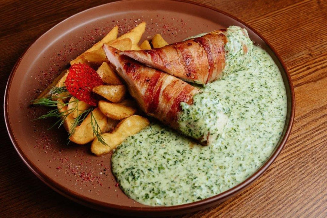 pil.belo meso, slanina, feta sir, španat, vedžis krompir