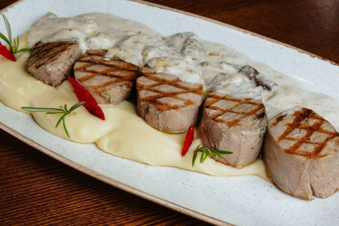 sv.file 300gr, miks šumskih pečuraka, pire krompir, neut.pavlaka, beli i crni luk